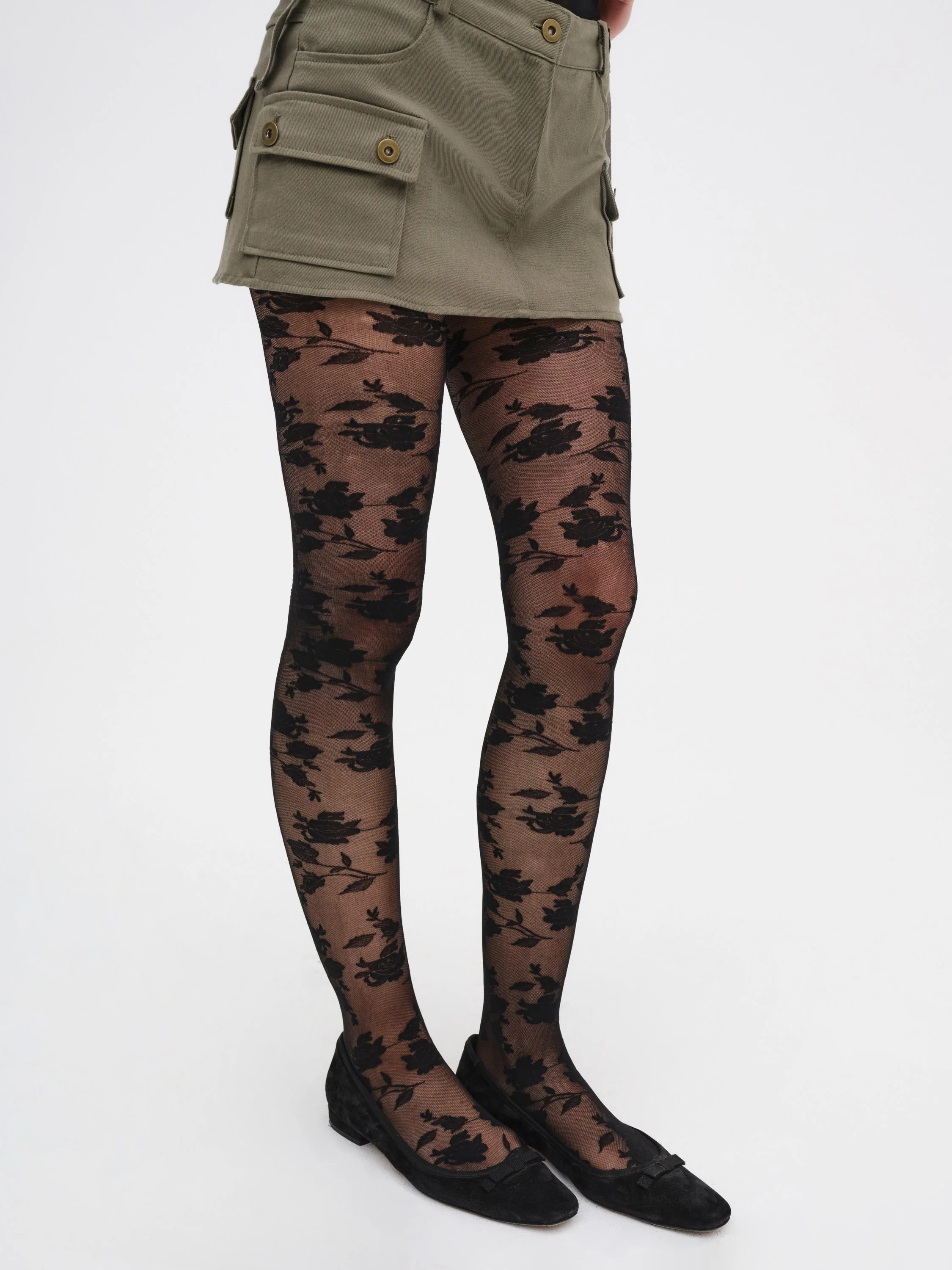 Get romantic in our Floral Knit black tights—floral tights designed to add a romantic kick to your day-to-night wardrobe.